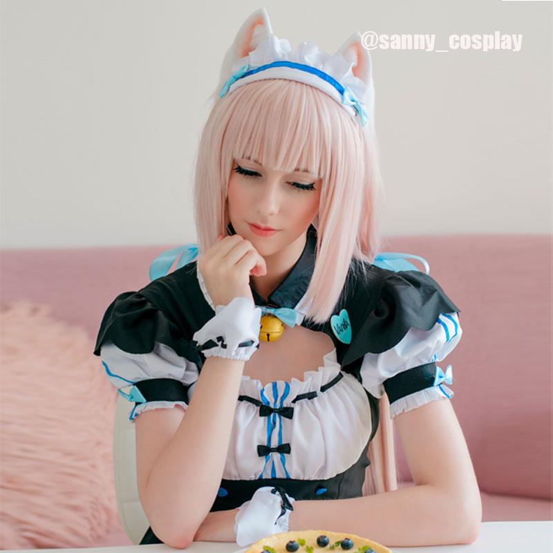Nekopara Vanilla 110 cm de long perruques de cosplay rose clair