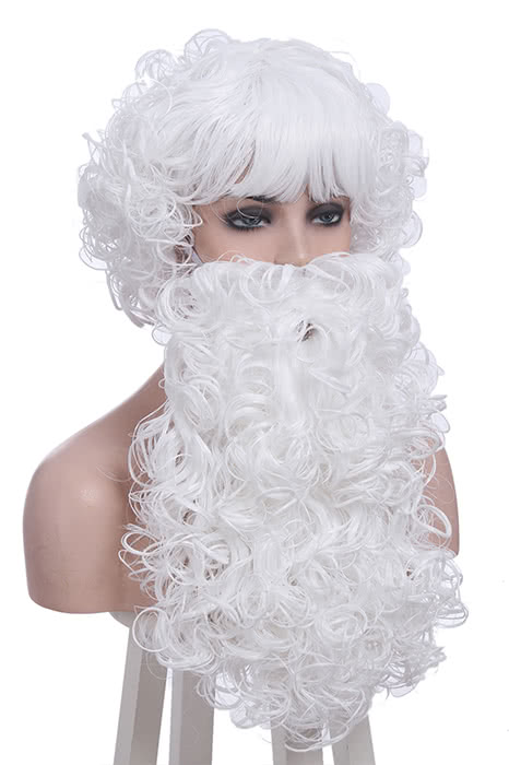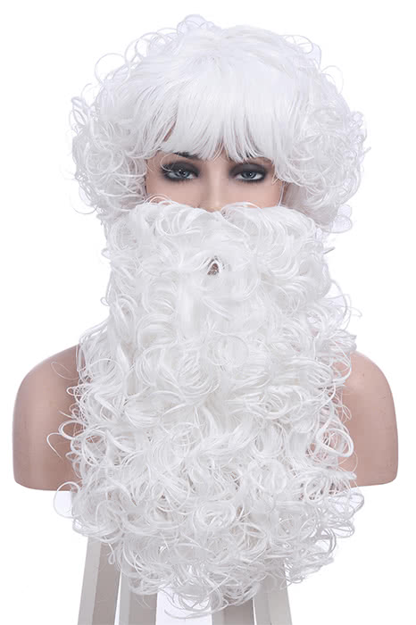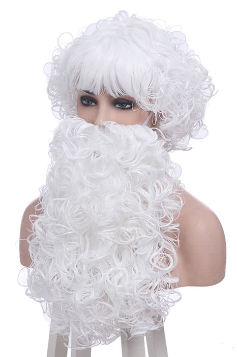 Christmas Santa Claus White Curly Wigs with Beards Unisexe Cosplay Wigs