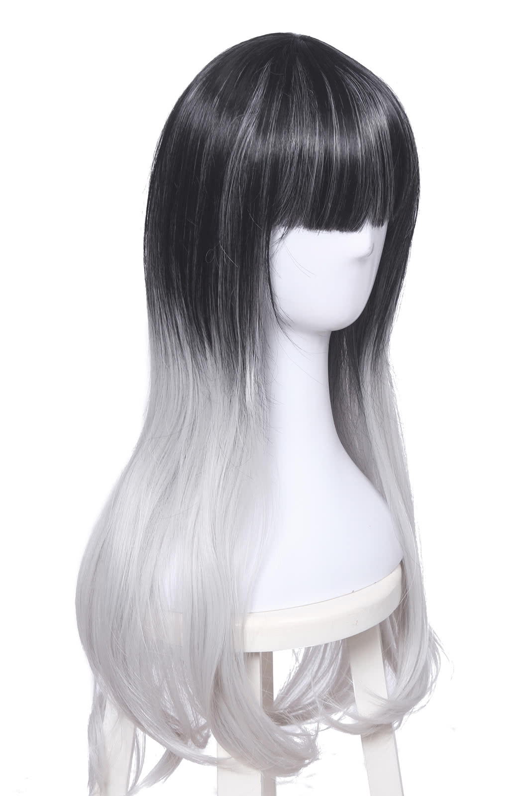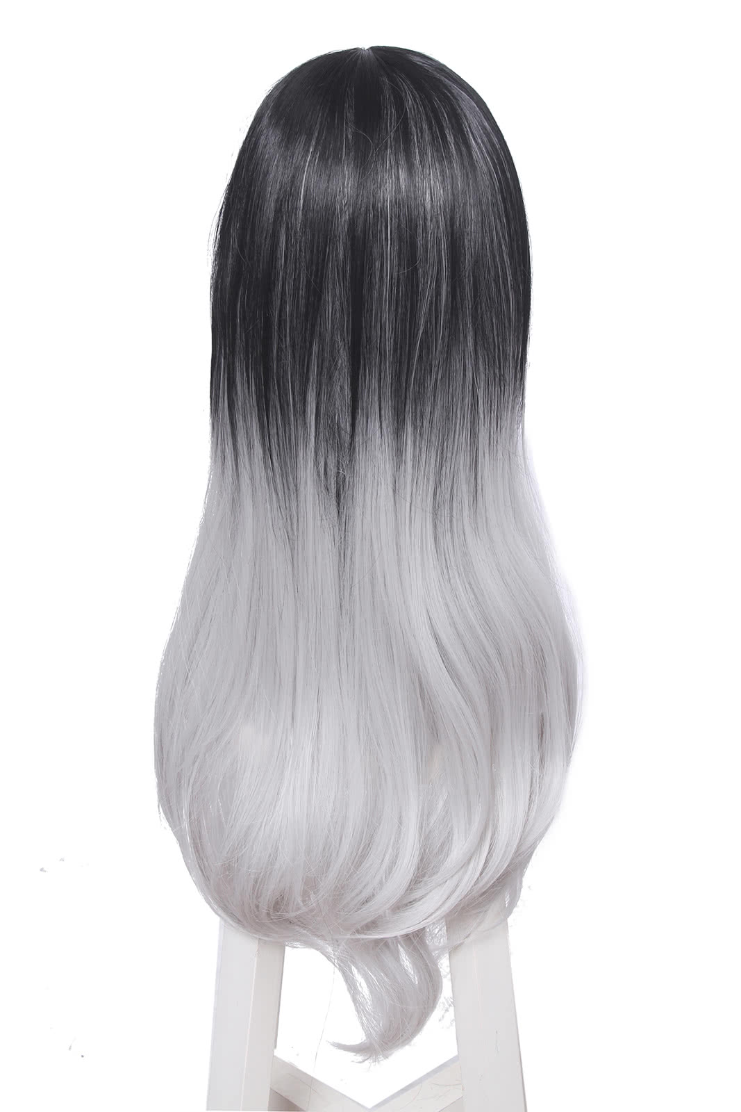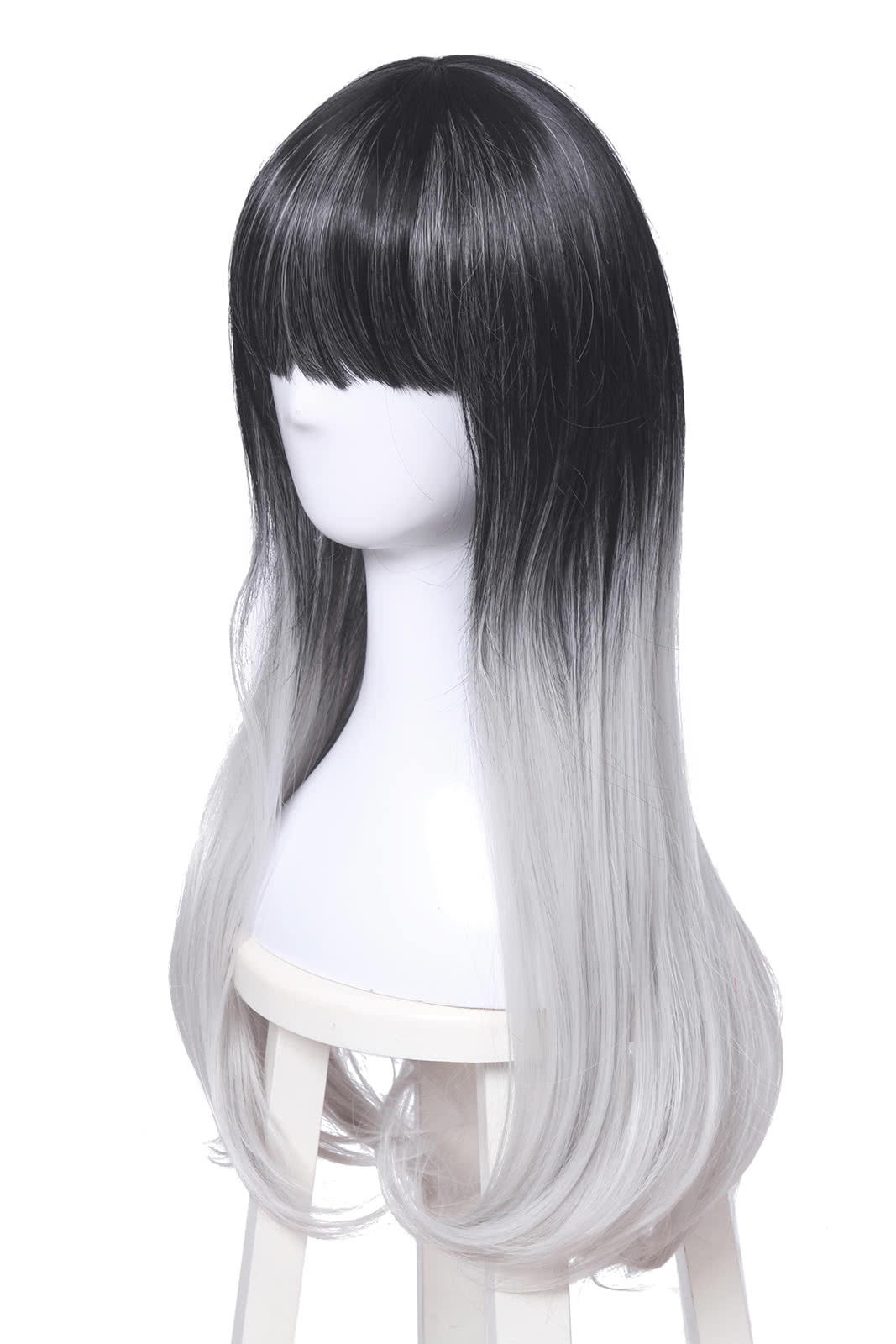 Fashion Lolita Long Noir mélangé noir et gris Wigs de cosplay synthétique