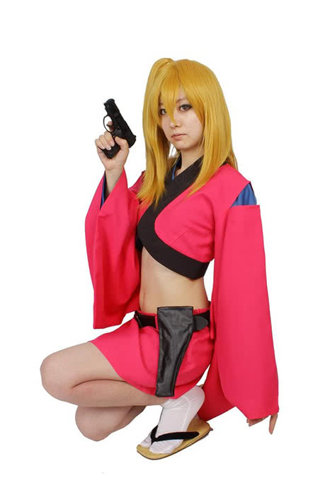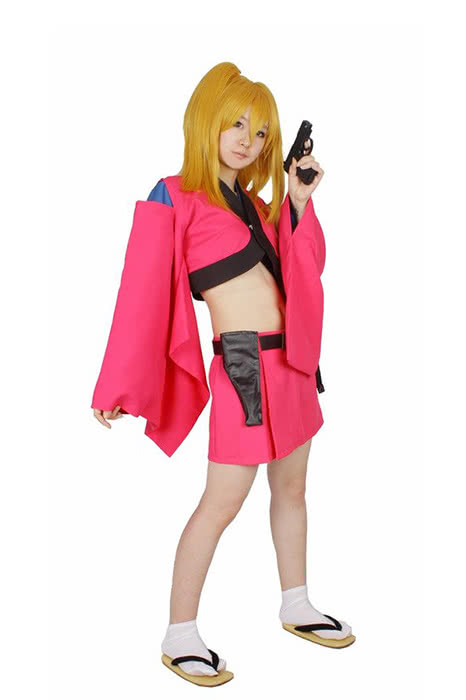 , se sentant doux et corsh les yeux. Elle porte un haut de type kimono rose recadré avec des doublures noires qui sont coupées aux épaules et une mini-jupe rose assortie. Ses armes de choix sont des armes de poing à double revolver, qu’elle conserve dans les étuis à ses hanches.